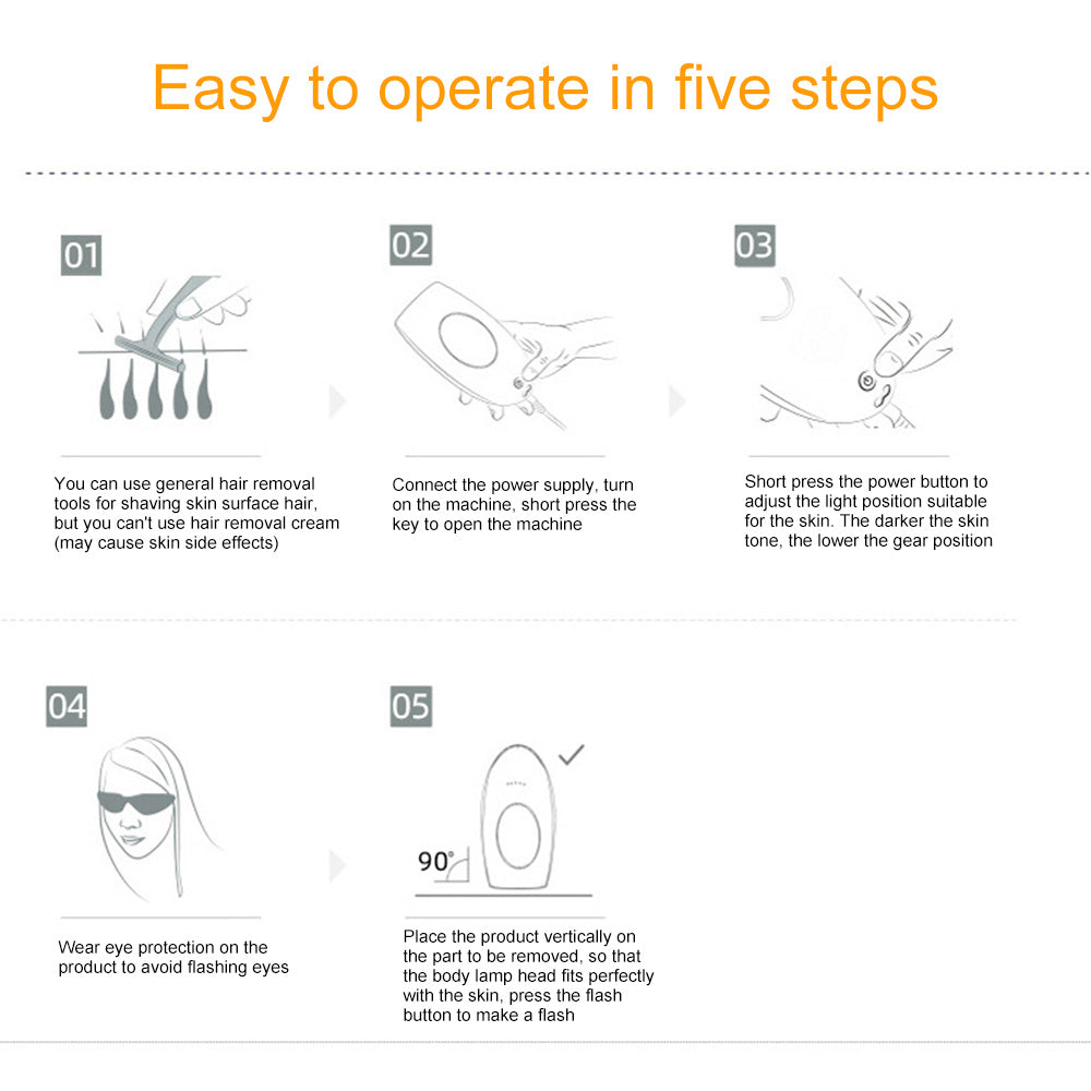 Unlike other hair removal methods such as waxing or epilating, using our Laser Hair Remover is painless. The gentle IPL technology allows for a pleasant treatment without any pulling or unpleasant side effects. Women can relax and enjoy hair removal without worrying about pain or wounds.